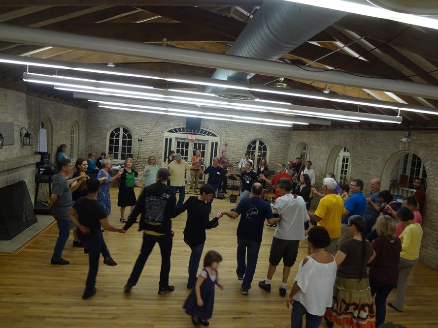 Contradancing in Austin originated when AFTM (Austin Friends of Traditional Music) started a jam session at Hancock Recreation Center (click here for map) over 30 years ago or so. Somebody (the name was lost in time) said “Hey, this is a good dance floor so let’s dance!” and thus the dancing started. The dancing went through several variations and around 1990 became predominately contradance.