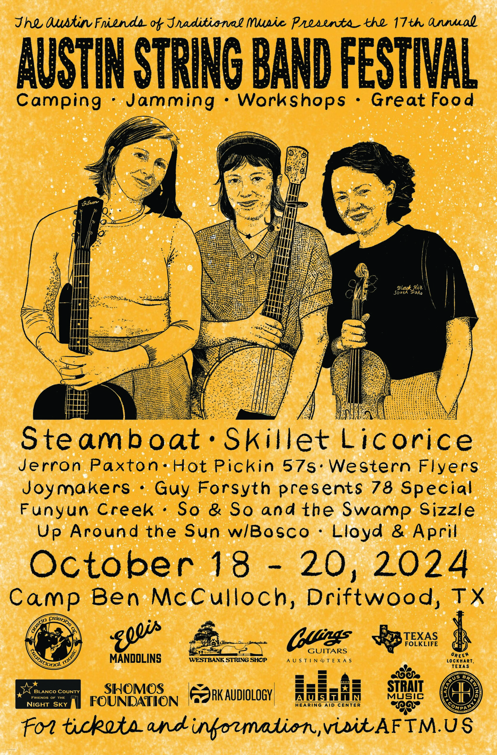 Camp Ben McCulloch 18301 Ranch to Market Rd 1826, Driftwood, Texas, United StatesThe 17th Annual Austin String Band Festival is the weekend of October 18 - 20, 2024, at Camp Ben McCulloch in nearby Driftwood, TX. Join us for a weekend of music, camping, jamming, dancing, and friends! This family-friendly festival brings together musicians and roots music enthusiasts from Central Texas and beyond. In addition to two stages of live string band performances,...