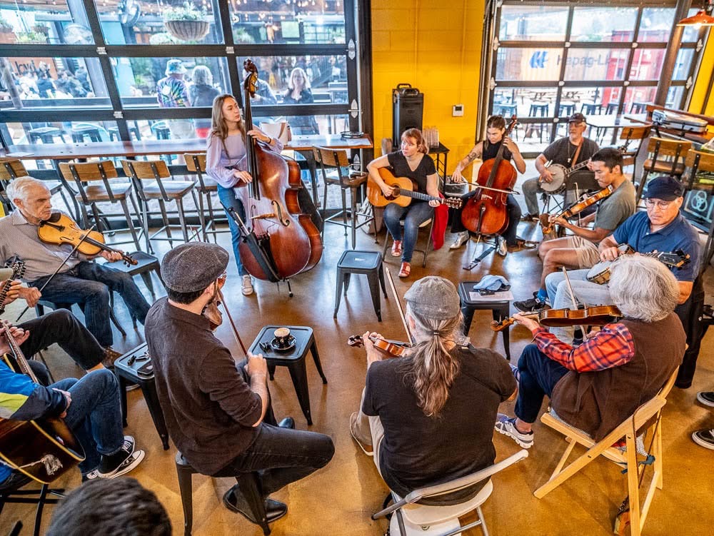 Sessions Thursdays at 7pm on the Paseo beside the pub. Session players get a drinks tab & food disco. |